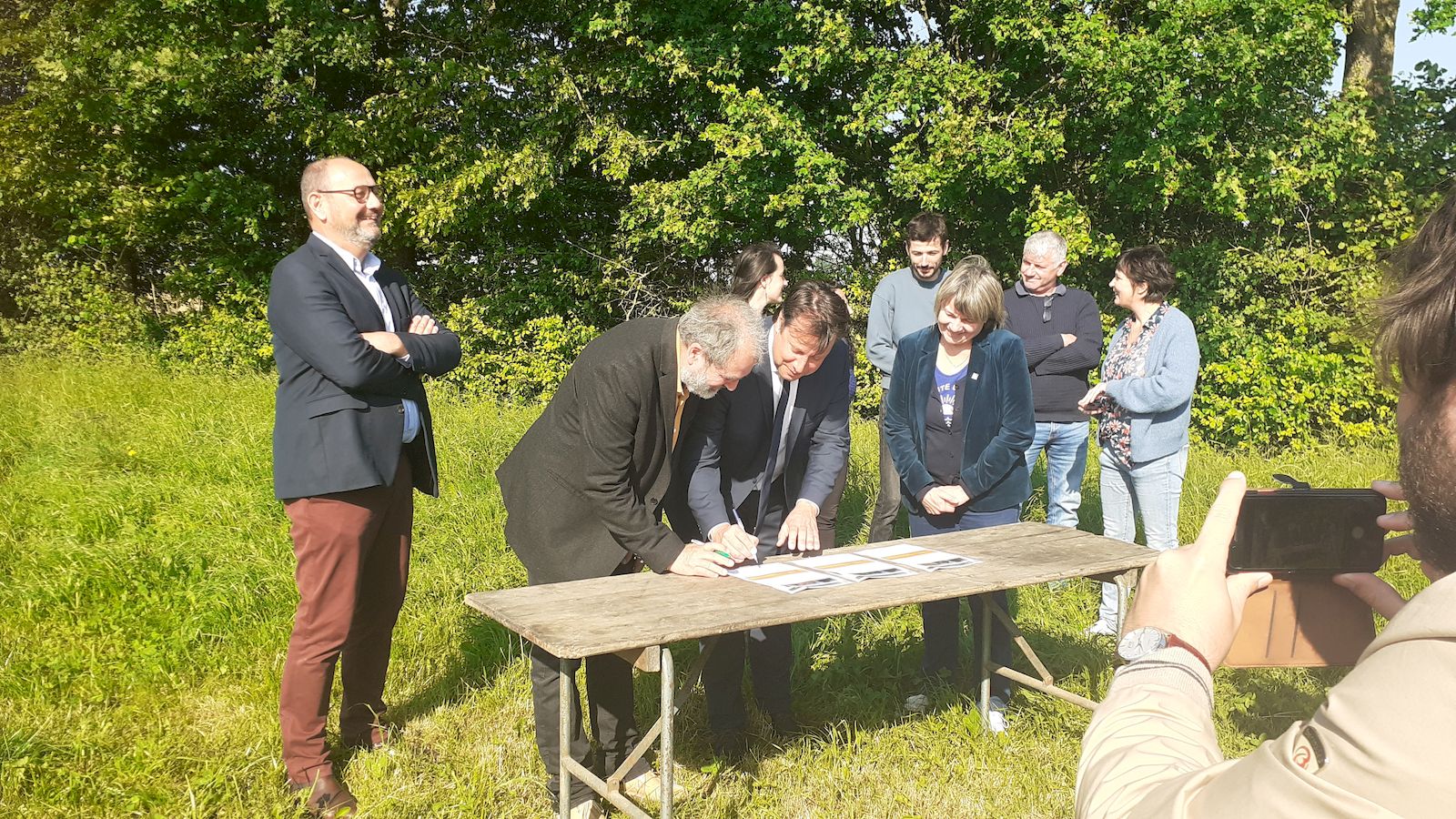 La signature a été réalisée en présence de la Conseillère régionale en charge du bocage et de la forêt Carole Le Bechec, du président de l’Afac-Agroforesteries Philippe HIROU et de divers acteurs du bocage bretons dont l’ATBVB représentée par son animatrice Charlotte LE GUENIC.