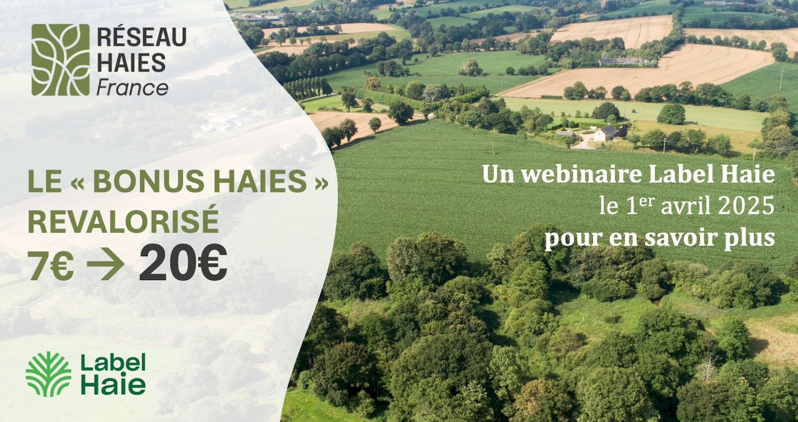 Ce Webinaire proposé par Réseau Haies France vise à présenter l’augmentation du Bonus Haies de la PAC de 7 à 20 euros pour la campagne 2025. Il permettra également de comprendre les modalités d’obtention du Bonus Haies. Plus d’information sur le programme et les intervenants à venir.